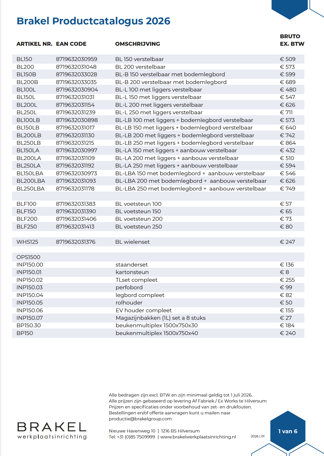 De geschiedenis van Brakel gaat terug tot de jaren 60. Sinds 1963 worden vanuit Hilversum onze werktafels, werkbanken en kasten geproduceerd. Door tientallen jaren ervaring onderscheiden onze producten zich in duurzaamheid, stabiliteit en een tijdloos design. Door gebruik te maken van hoogwaardige materialen worden onze producten gebruikt in productiehallen, werkplaatsen, laboratoriums etc. Overal waar veilig en efficiënt gewerkt moet worden en waarde wordt gehecht aan betrouwbare uitstraling, komen onze producten volledig tot zijn recht.